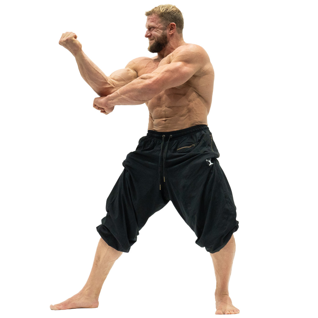 Can you imagine a Shaolin monk or Taekwondo Grandmaster kicking and stomping out hardcore stances in skin tight joggers? NO! They need their legs to move in all directions without the fabric catching or hugging. Baggy pants with a reinforced or split gusset (crotch), provide room to move and perform legendary feats!